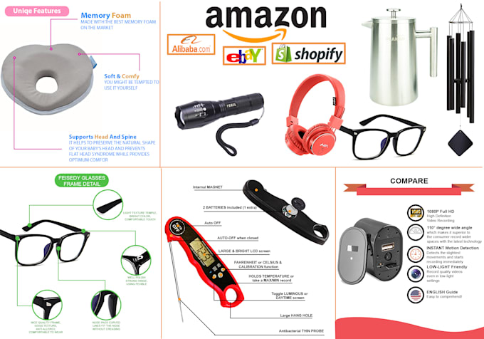 - Infographic images (shows the product's features, additional graphics, and texts, Amazon zooming options, etc)