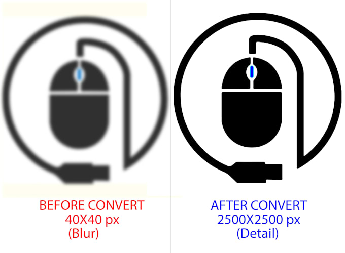 change logo image / vector image from low resolution example (40x40 px) to high resolution (2500x2500 px)